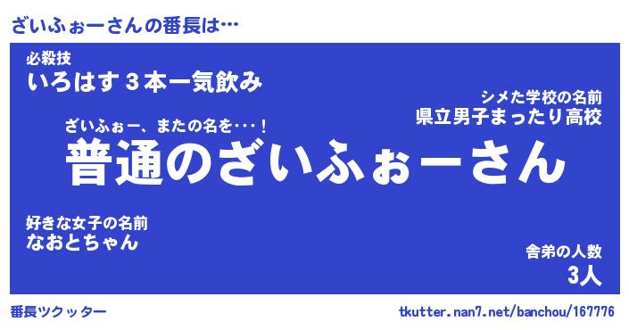 | ファンタジー風あだ名 | 『ザイフェル』『エターナルザイフォーー』 |