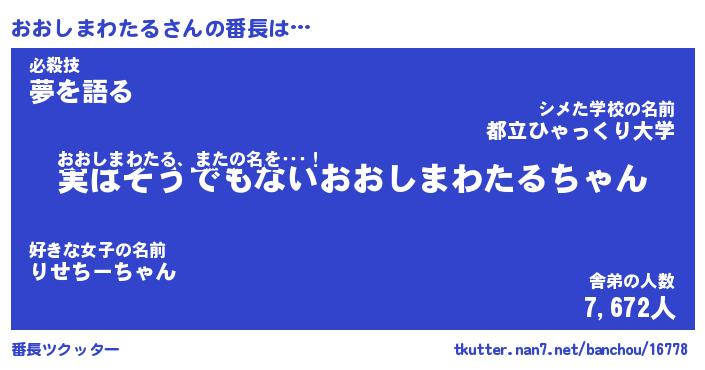 | 肩書あだ名 | 『おおしまわたる店長』 |