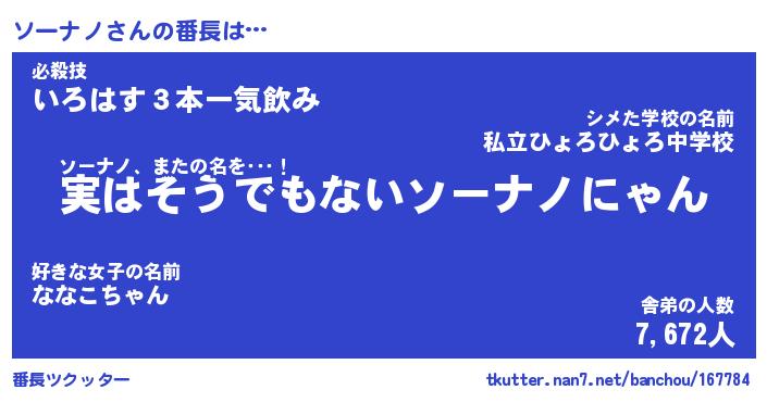 | ポケモン風あだ名 | 『ソーチュウ』『ソーナダネ』 |
