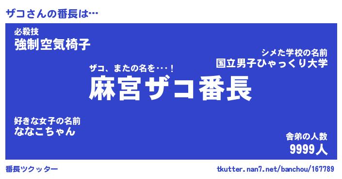 | 意味不明あだ名 | 『ペロリンザコ』『ザコフォーエバー』 |