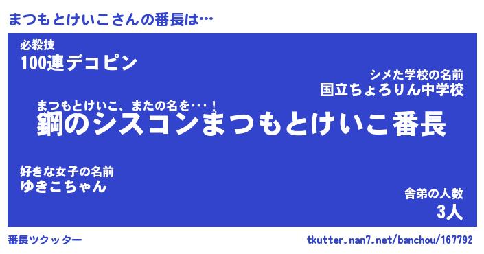 | 伝説のあだ名 | 『封印されし竜騎士まつもとけいこ』 |