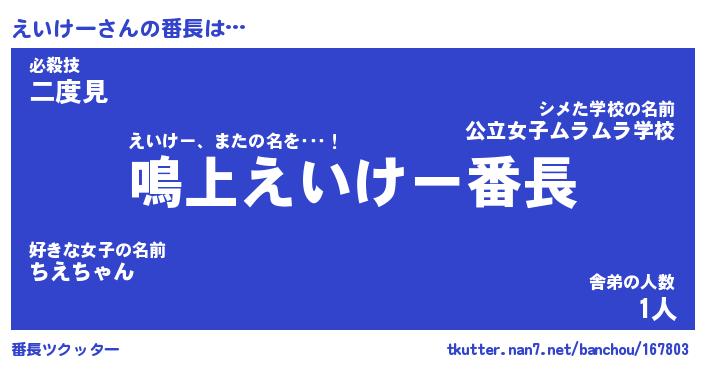 | ポケモン風あだ名 | 『エイチュウ』『エイケダネ』 |