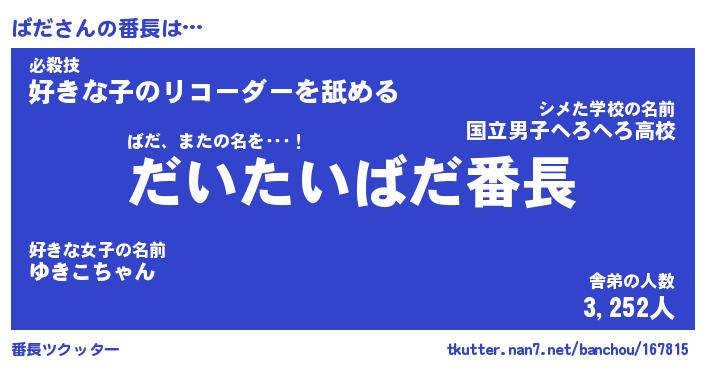 | ヒーロー風カッコイイあだ名 | 『スーパーバダ』『ウルトラばだマン』 |