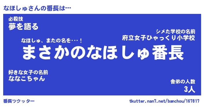 | 意味不明あだ名 | 『ペロリンなほしゅ』『永久保存なほしゅ』 |