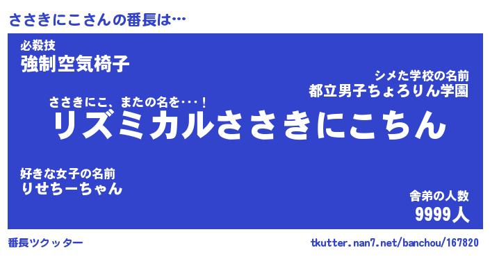 | 伝説のあだ名 | 『伝説のスナイパーささきにこ』 |