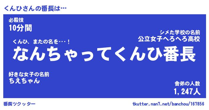| ヒーロー風カッコイイあだ名 | 『スーパークンヒ』『ウルトラくんひマン』 |