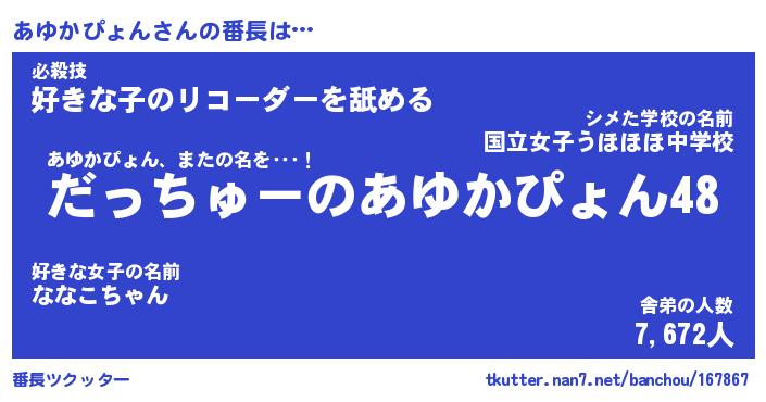 | 伝説のあだ名 | 『伝説のスナイパーあゆかぴょん』 |