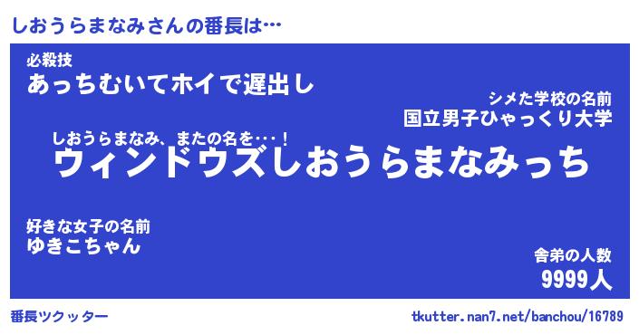 | ヒーロー風カッコイイあだ名 | 『スーパーシオウラマナミ』 |