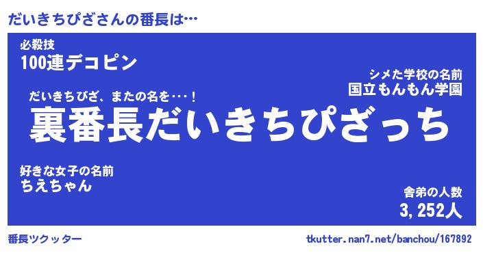 | 肩書あだ名 | 『だいきちぴざ社長』『だいきちぴざ班長』 |