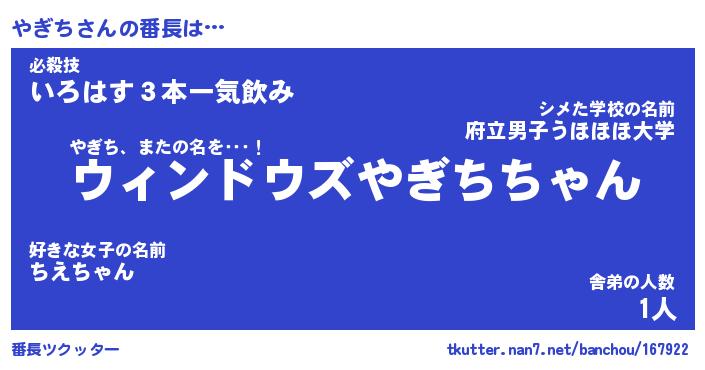 | 肩書あだ名 | 『やぎち店長』『やぎち大統領』 |