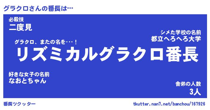 | ヒーロー風カッコイイあだ名 | 『スーパーグラクロ』『魔戒騎士グラ』 |