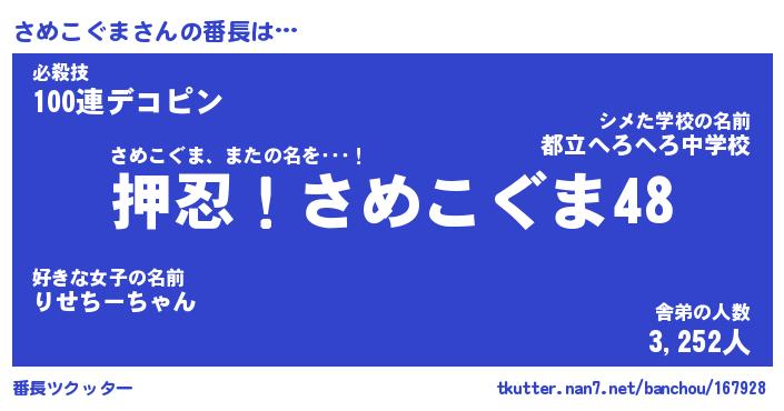 | ファンタジー風あだ名 | 『サメフェル』『エターナルサメコグマー』 |