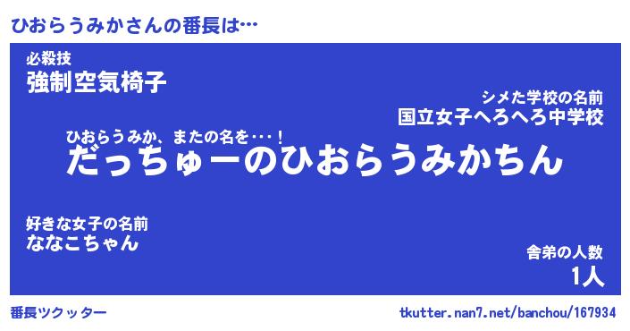 | 伝説のあだ名 | 『伝説のスナイパーひおらうみか』 |