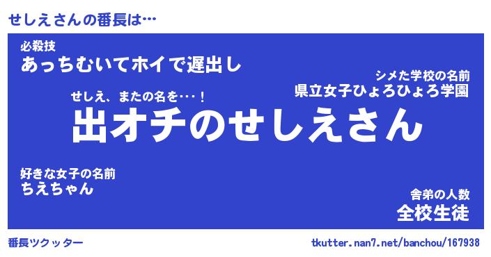 | 胡散臭い通販商品みたいなあだ名 | 『必ず成功する水晶球…その名も「せしえ」』 |