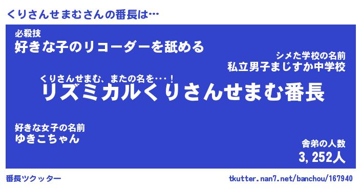 | ヘコむあだ名 | 『くりにゅー』『酢こんぶ』『くりを』 |