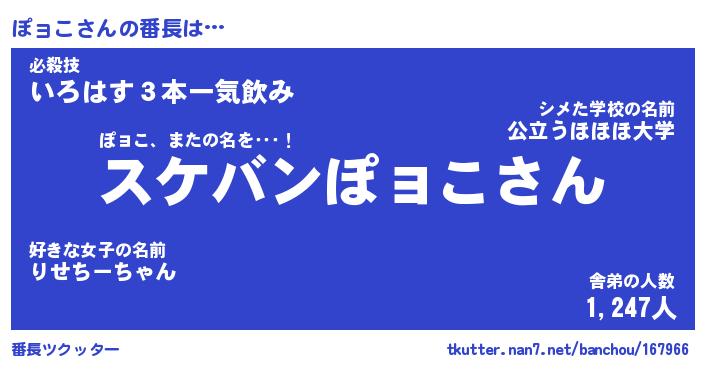| ヒーロー風カッコイイあだ名 | 『スーパーポョコ』『ウルトラぽョこマン』 |