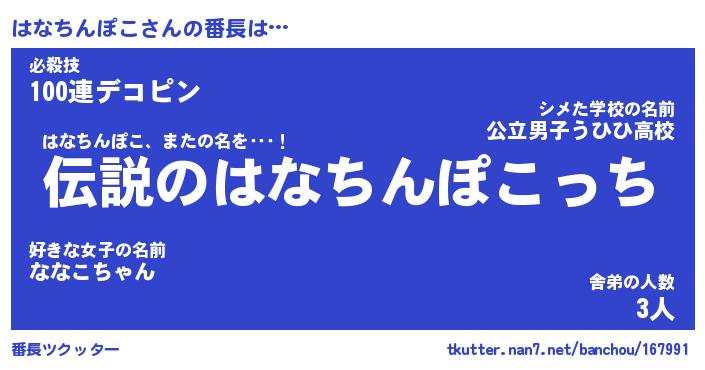 | ポケモン風あだ名 | 『ハナチュウ』『ハナチダネ』 |