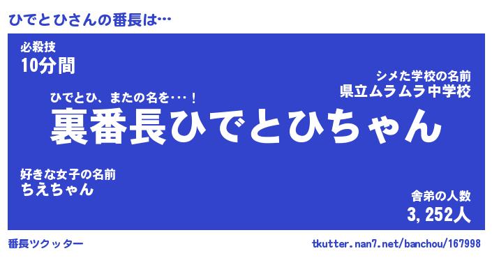 | 2回繰り返すあだ名 | 『ひでひで』『ひひでで』『おやおや』 |