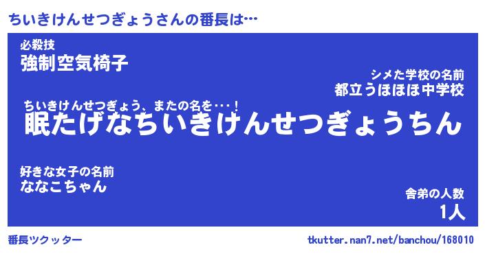 | ヘコむあだ名 | 『ちいっふぃ~』『牛乳』『ちい太郎』 |