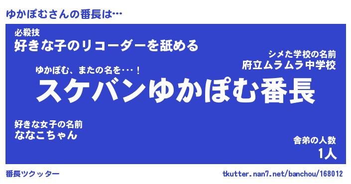 | 意味不明あだ名 | 『ペロリンゆかぽむ』『永久保存ゆかぽむ』 |