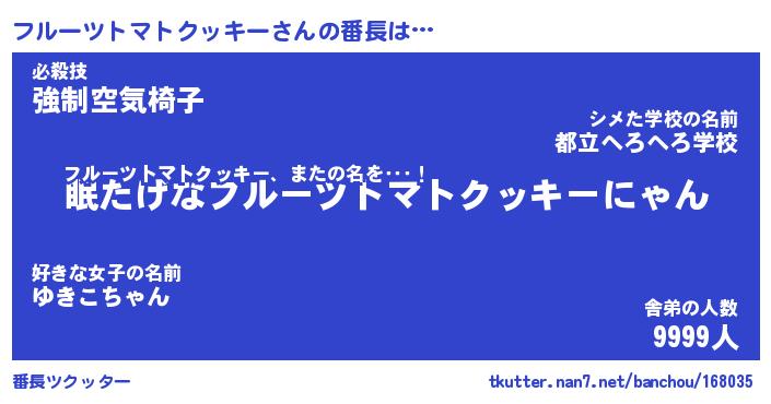 | 欧米人風あだ名 | 『マイケルフルーツトマトクッキー』 |