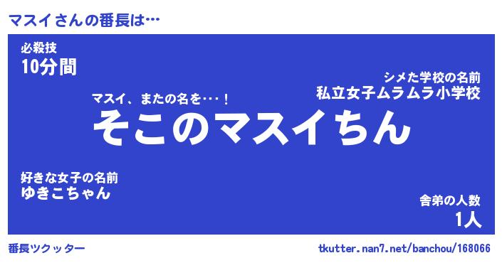 | ヘコむあだ名 | 『マスにゅー』『牛乳』『マス太郎』 |