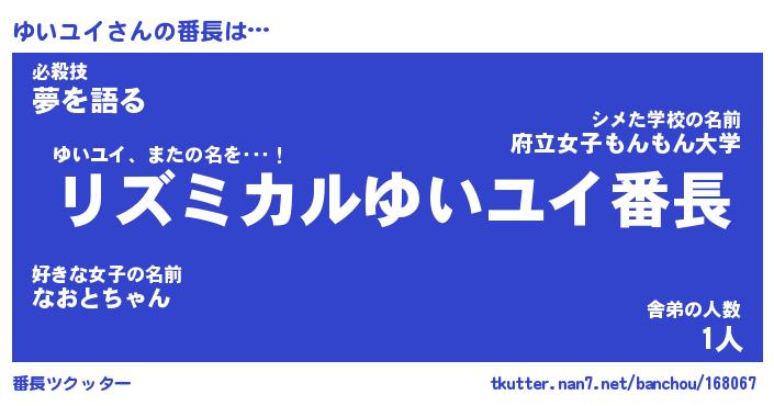 | 意味不明あだ名 | 『ペロリンゆいユイ』『永久保存ゆいユイ』 |