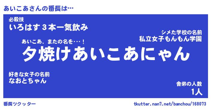 | 肩書あだ名 | 『あいこあ御曹司』『あいこあ大統領』 |