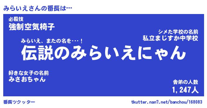 意味不明あだ名 | 『ペロリンみらいえ』『永久保存みらいえ』 |