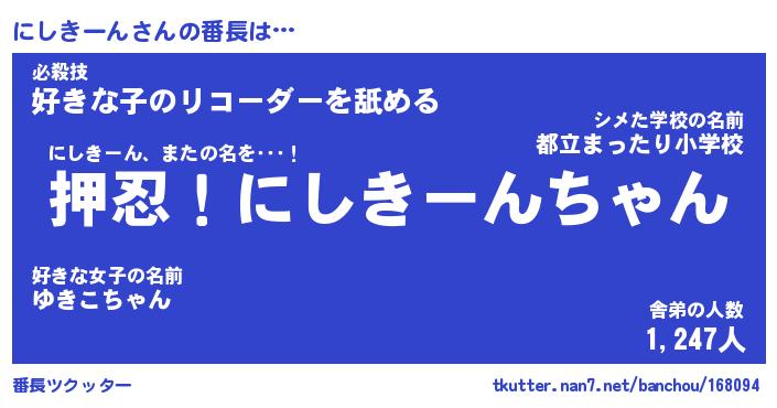 | 肩書あだ名 | 『にしきーん店長』『にしきーん総理大臣』 |