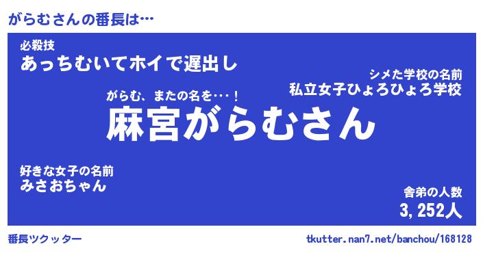 | ヒーロー風カッコイイあだ名 | 『スーパーガラム』『ウルトラがらむマン』 |