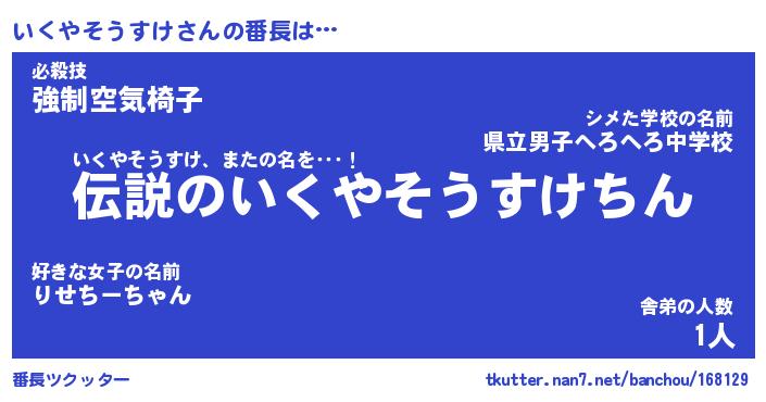 | 伝説のあだ名 | 『伝説のスナイパーいくやそうすけ』 |