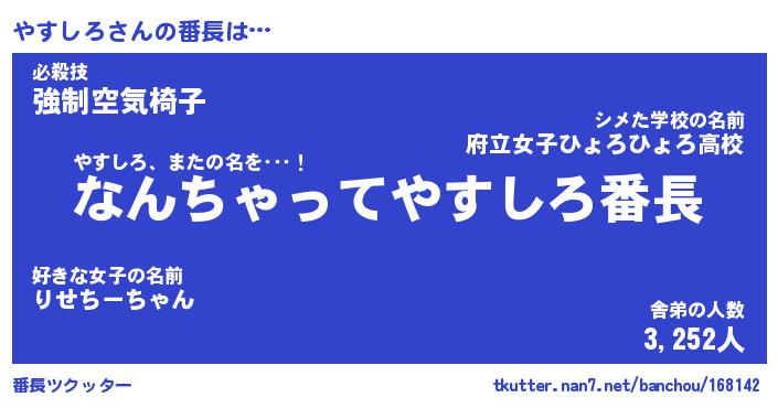 | 意味不明あだ名 | 『ペロリンやすしろ』『永久保存やすしろ』 |