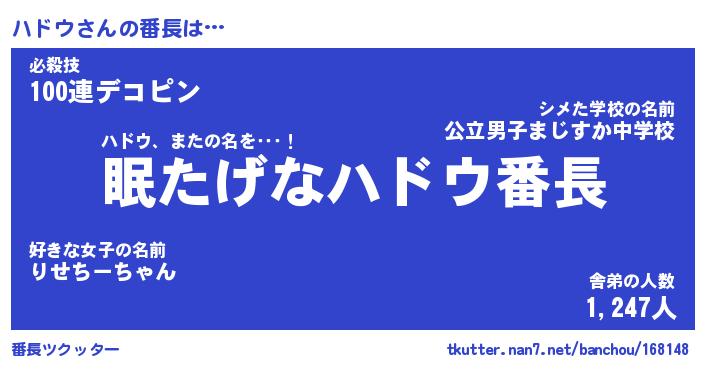 | ヘコむあだ名 | 『ハドっふぃ~』『つくし』『ハドお』 |
