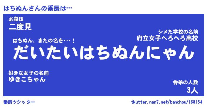| ファンタジー風あだ名 | 『ハチフェル』『エターナルハチヌンー』 |