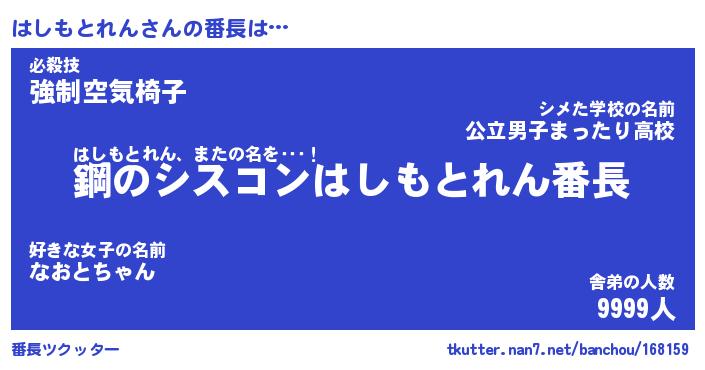 | 伝説のあだ名 | 『封印されしスナイパーはしもとれん』 |