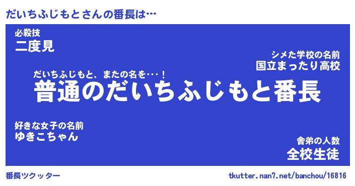 | 男性向けラノベタイトル風あだ名 | 『だいちふじもとの憂鬱』 |