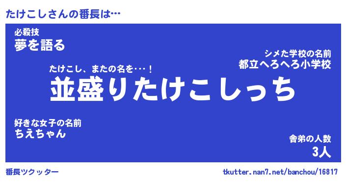 | ファンタジー風あだ名 | 『タケフェル』『エターナルタケコシー』 |