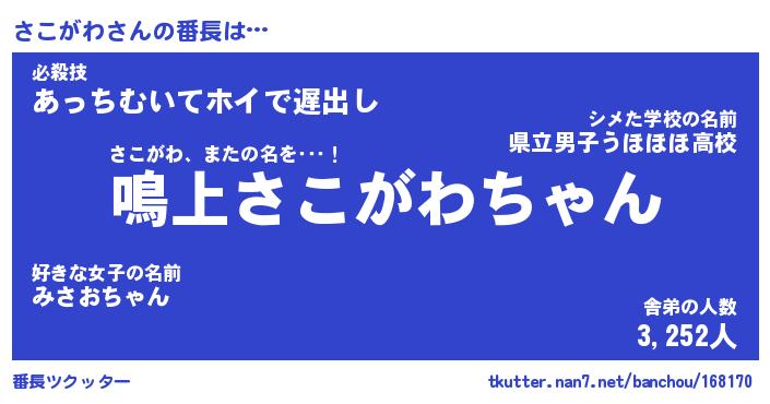 | 意味不明あだ名 | 『ペロリンさこがわ』『永久保存さこがわ』 |
