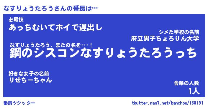 | 意味不明あだ名 | 『ペロリンなすりょうたろう』 |