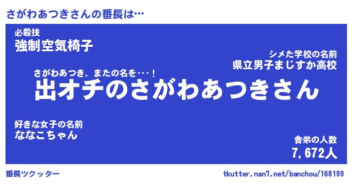 | ヒーロー風カッコイイあだ名 | 『スーパーサガワアツキ』『黄金騎士サガ』 |
