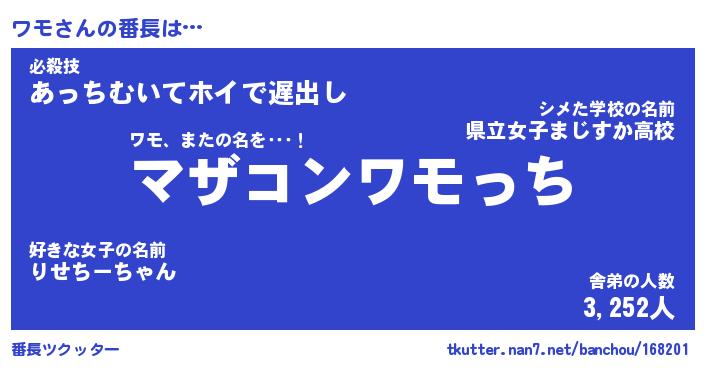 | ピコ太郎風あだ名 | 『ワコ三郎』『ピワ四郎』『ワモ十郎』 |