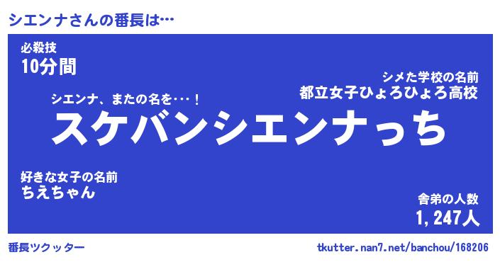 | 意味不明あだ名 | 『ペロリンシエンナ』『永久保存シエンナ』 |