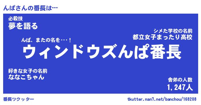 | ヘコむあだ名 | 『んぱにー』『豆乳』『んぱ太郎』 |
