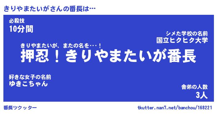 | 肩書あだ名 | 『きりやまたいが御曹司』 |