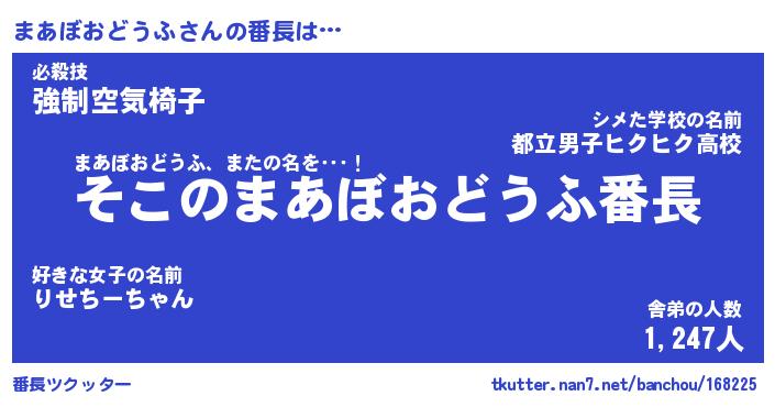 | 欧米人風あだ名 | 『マイケルまあぼおどうふ』 |