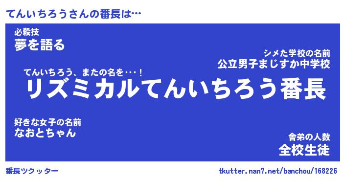 | 肩書あだ名 | 『てんいちろう店長』『てんいちろう助手』 |