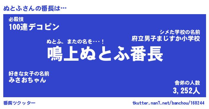| ヘコむあだ名 | 『ぬとにゅー』『つくし』『ぬとっぺ』 |