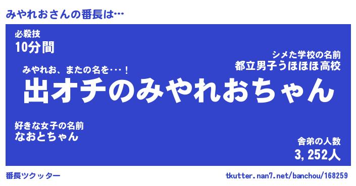 | 意味不明あだ名 | 『ペロリンみやれお』『永久保存みやれお』 |