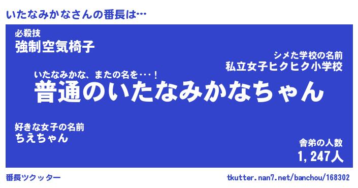 | 男性向けラノベタイトル風あだ名 | 『いたなみかなの憂鬱』 |